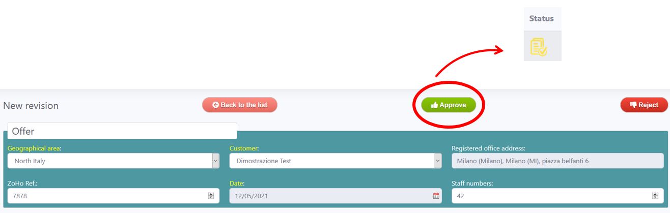 Una volta approvato dalla Direzione Tecnica, lo status della review cambia.