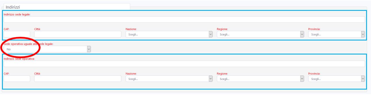 – Se metto NO: devo compilare anche indirizzo sede operativa