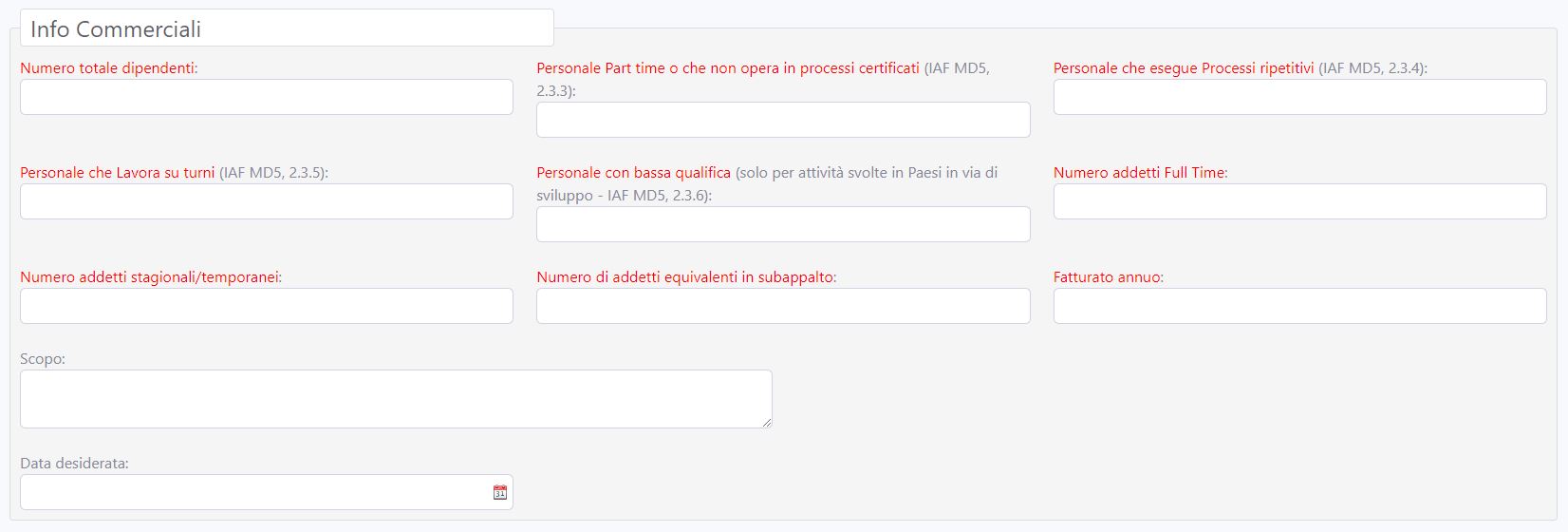 La “Data desiderata” è data entro cui il cliente vuole essere certificato (viene compilata nel form di richiesta).