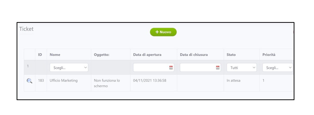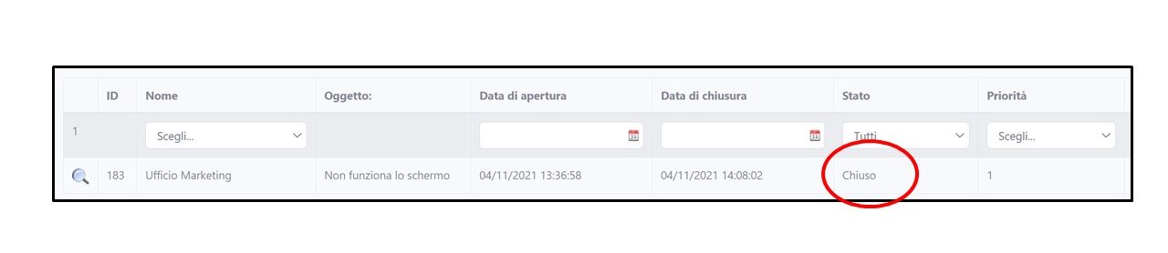 Una volta risolto il problema il ticket sarà indicato come chiuso.