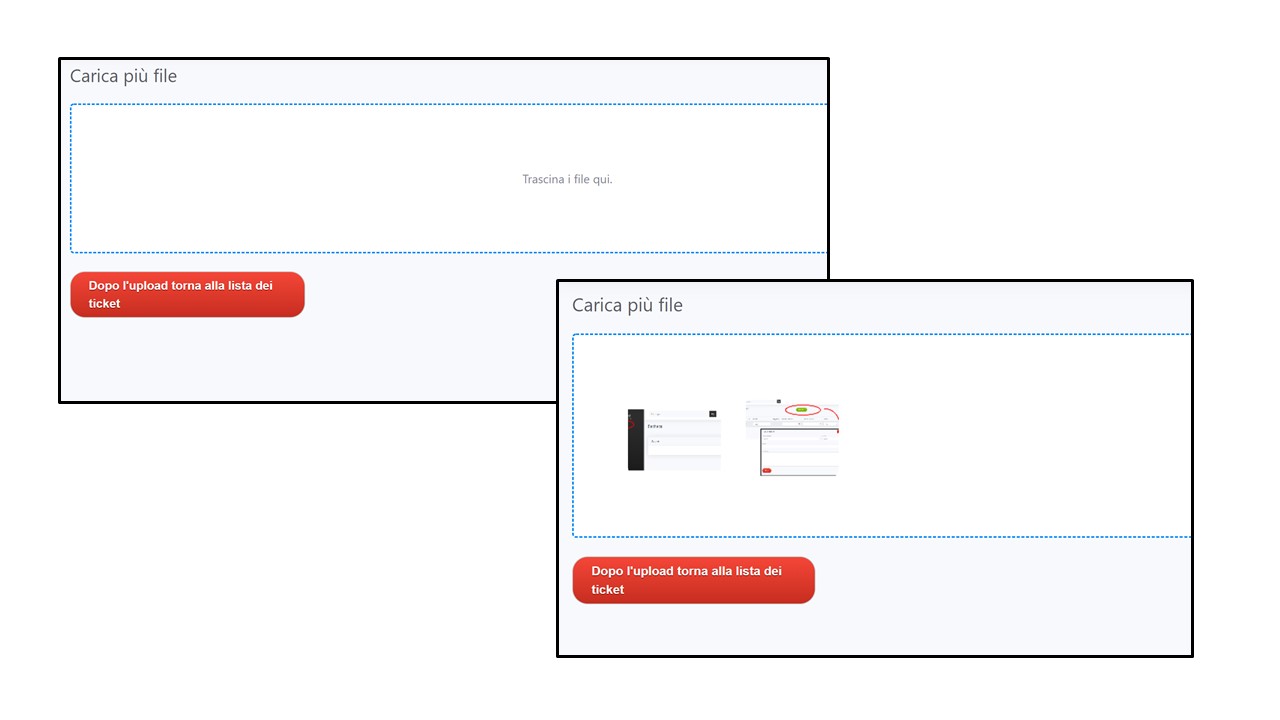 Cliccando su “Salva” poi si accederà alla schermata successiva, che permette di allegare screenshot, immagini e file.