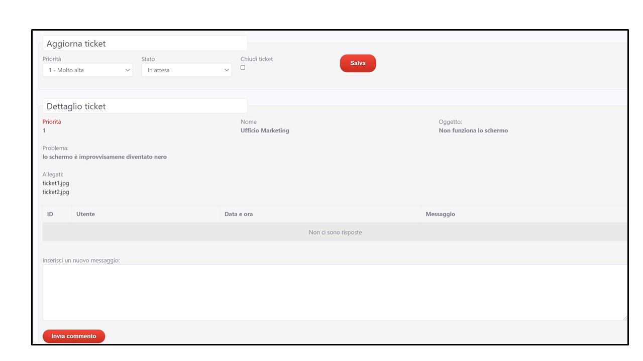 All’apertura di un ticket esistente, si potranno consultare i suoi dettagli.